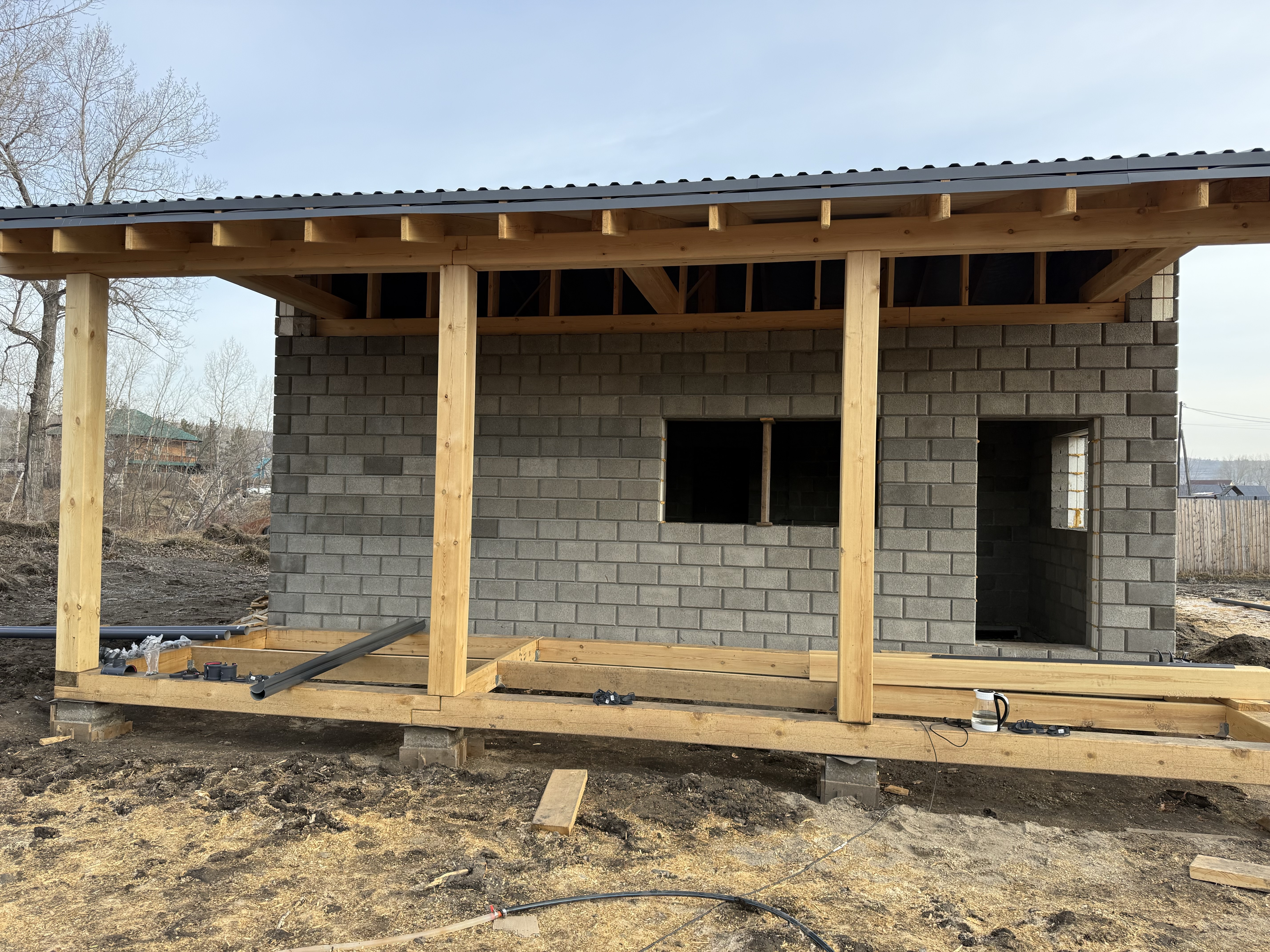 - Кладка стен из теплоблоков